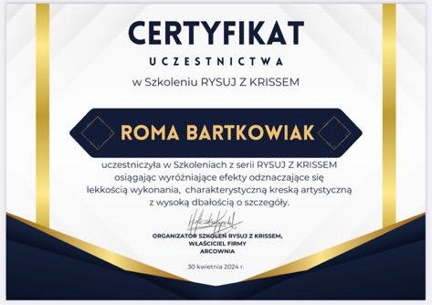 Portrety w kolorze, kredkami, to czasochłonne, realistyczne dzieła wykonane z dbałością o szczegóły. Portrety ołówkiem metodą suchego pędzla, realistyczne, rozcierane, bliższe fotografii efektu niż rysunku w prostej formie, uwydatniają jednak moją charakterystyczną kreskę.